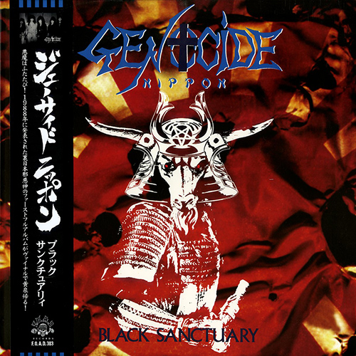 Founded in 1978 in Takefu, Fukui, GENOCIDE NIPPON are a true gem of pure Japanese metal, characterized by witching atmospheres with a doomish vibe and the legendary high-pitched vocals of Toshihiro Takeuchi, which has led them to be often considered the Japanese answer to MERCYFUL FATE! "Black sanctuary" LP Official reissue of their iconic debut album from 1988, previously re-released only on CD and as part of a scarcely circulated LP boxset. Their undisputed masterpiece, finally available in this ultimate version faithful to the original, reacquired from the band's masters, packaged with an extra OBI strip and a stunning 16-page full color booklet with photos and scans from the 1st edition.